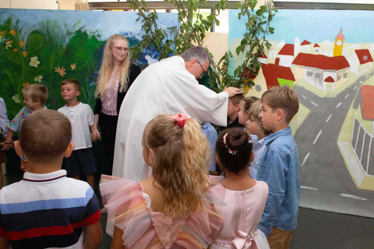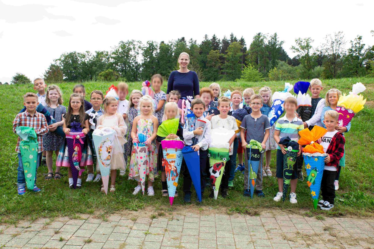 Bei schönstem Spätsommerwetter wurden die neuen 74 Erstklässler mit einem feierlichen Einschulungsfest an der Maximilian-Kolbe-Schule empfangen. Unter den stolzen Augen der Eltern, Großeltern und Verwandten hießen die Rektorin Ute Brenner, der Pfarrer Timo Weber und das Grundschul-Kollegium die frischgebackenen Schülerinnen und Schüler im Foyer willkommen.