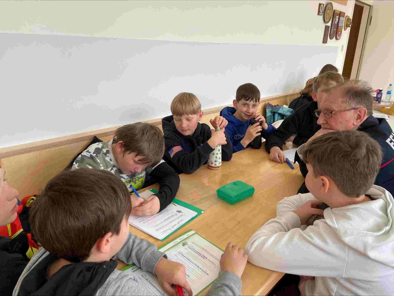 Nach so vielen Eindrücken stand erst mal vespern auf dem Programm. Hierzu durften die Kinder in den Mannschaftsraum, der sich zusammen mit Büros, dem Raum der Jugendfeuerwehr und einem großen Schulungsraum im Obergeschoss der Feuerwache befindet.