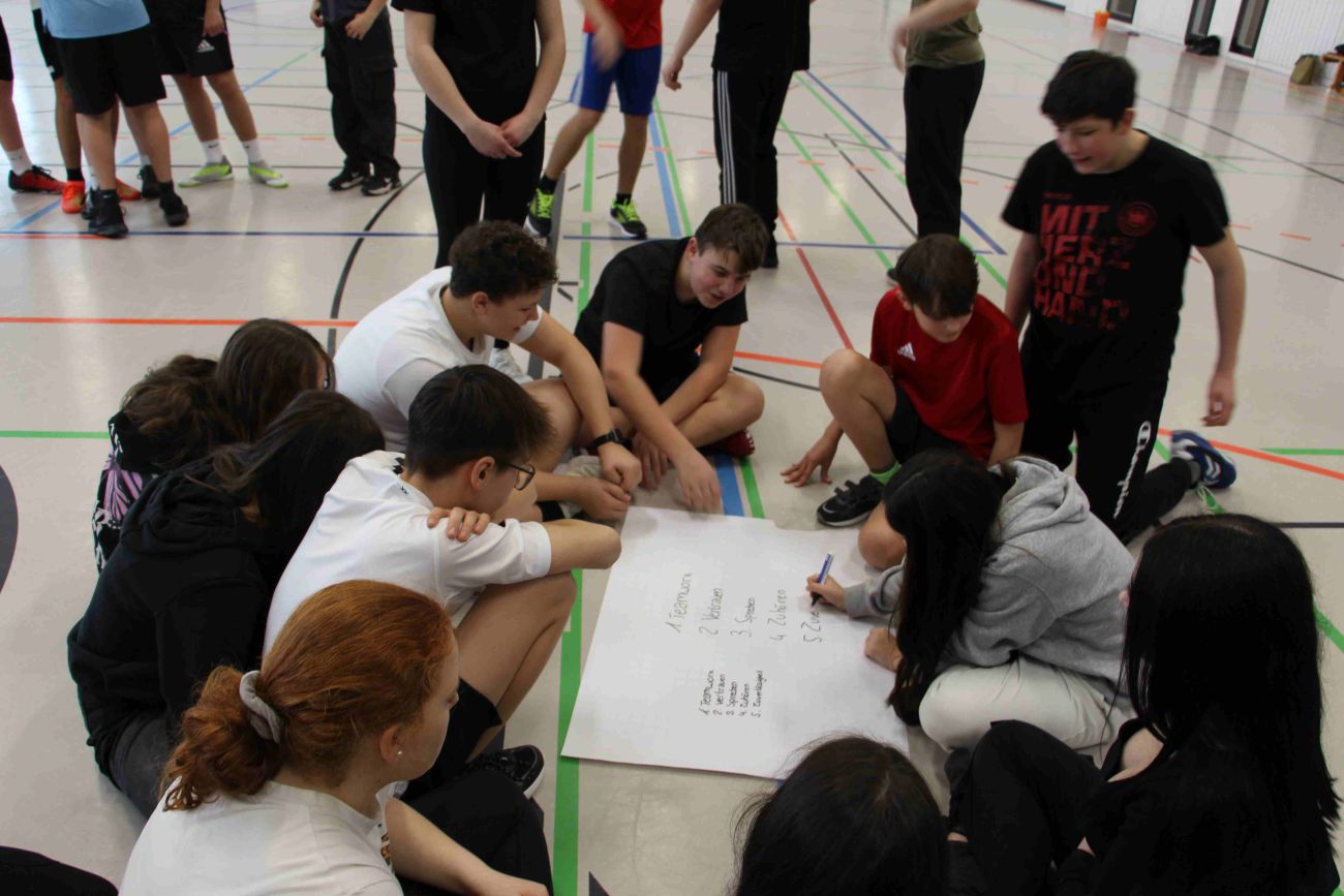 In einer abschließenden Feedbackrunde erstellten die Jugendlichen Plakate mit Leitlinien, die wichtig für ein gutes Arbeiten in einem Team sind. Werte wie Vertrauen, Zuverlässigkeit, Motivation, aber auch Spaß und Freundlichkeit waren den Klassenteams hierbei wichtig.