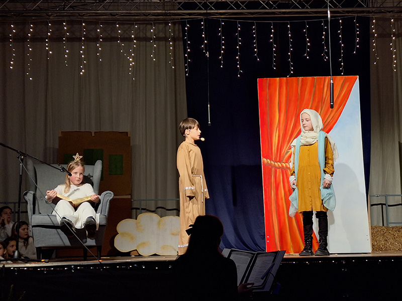 Umrahmt von wundervoller Chor- und Instrumentalmusik unseres Grundschul-und Sekundarstufenchors sowie der Gitarrengruppe führte die Klasse 3c ein schönes Krippenspiel auf, die Tanz-AG bezauberte uns mit einem stimmungsvollen Lichtertanz und weitere Gedichtbeiträge luden zum Nachdenken ein.