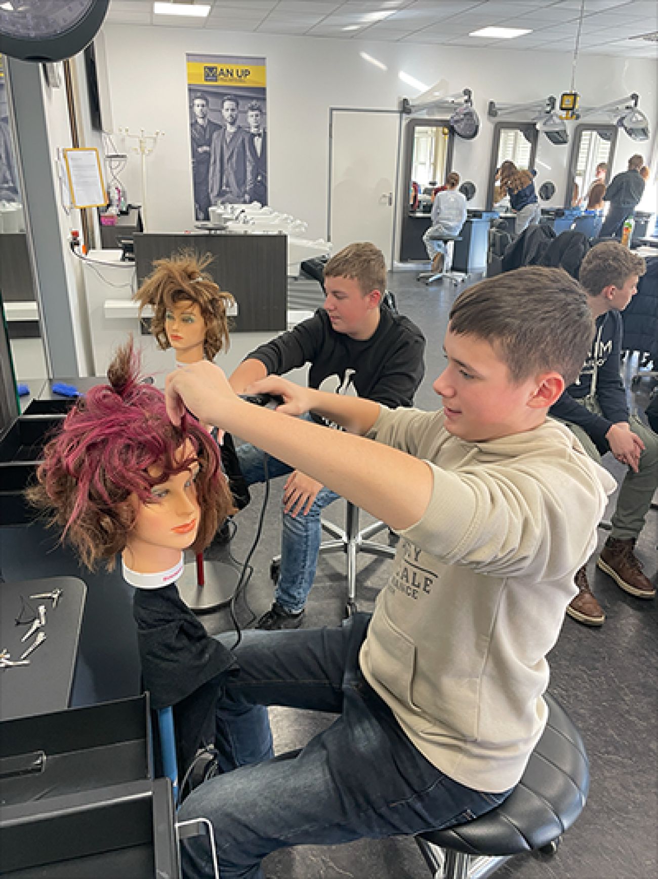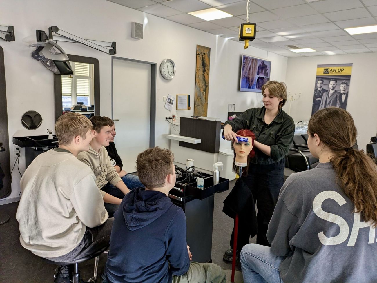Im Anschluss folgte der Friseurberuf. Hier lernten die Jugendlichen verschiedene Techniken und Stylings kennen. Unter Anleitung einer Friseurmeisterin konnten sie selbst Hand anlegen und ihre Fähigkeiten im Umgang mit Haaren ausprobieren. Diese praktische Erfahrung war für viele eine spannende Herausforderung.