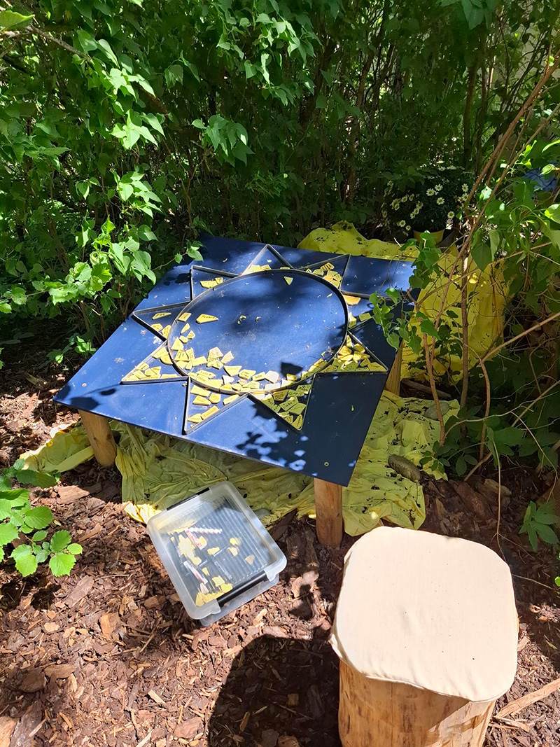 Natürlich schafften wir nicht alle Stationen, aber ein paar schon. Es gab eine Station zum Tod von Jesus. Hier dachten wir an einen geliebten Menschen, der uns fehlt, weil er gestorben ist. An einer anderen Station ging es um die Hoffnung. Was lässt uns hoffen, dass wir auch wieder aufstehen können? Hier notierten wir auf Mosaiksteinen, was Hoffnung für uns persönlich heißt. Und was sagte Jesus seinen Freunden als sie verzweifelt waren? Welchen Auftrag gab er Maria Magdalena? Was sollten sie tun, damit sie wieder Hoffnung schöpfen konnten? Wie spricht mich Jesus an? Und was könnte meine Aufgabe im Alltag sein? Dabei schauten wir in einen Spiegel. Wir schauten uns selbst genau an.