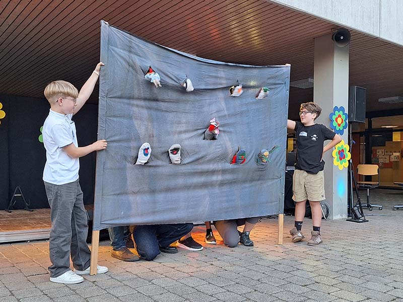 Unser Hausmeister Jürgen Schuler und seine Frau ließen auf die Titelmelodie von "Carmen" die Puppen tanzen. Die eindrucksvolle "Stand-up-Socken-Performance" im Takt zur Musik erntete zahlreiche Lacher und tosenden Beifall, spontan assistiert wurden sie von Markus Mauch, David Gleim und unseren fleißigen Tontechnikern!
