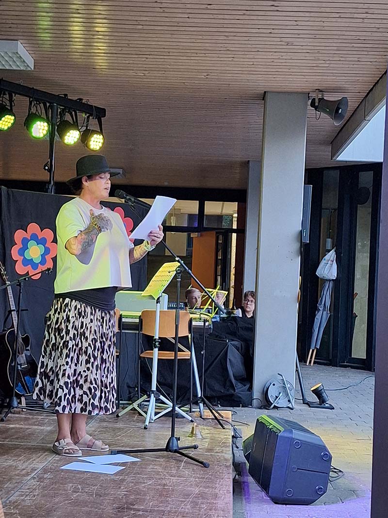 Ein lauer Sommerabend, ein tolles Ambiente, ein engagiertes Team und eine Bühne mit der erforderlichen Technik, mehr brauchte es an diesem Freitag nicht, um eine Neuauflage der MKS OPEN STAGE zu starten. Die Hauptrollen spielten die Menschen auf, vor und hinter der Bühne, allesamt guter Laune und voller Tatendrang und Spannung, denn schließlich wusste außer Organisatorin Tatjana Mitsche niemand, was uns auf der Bühne erwartet.