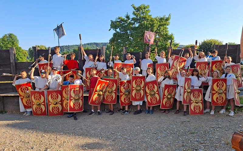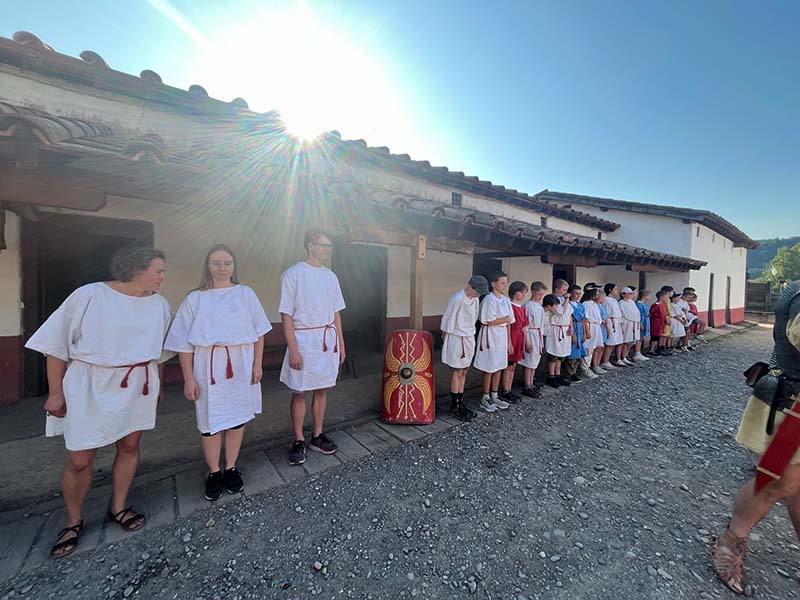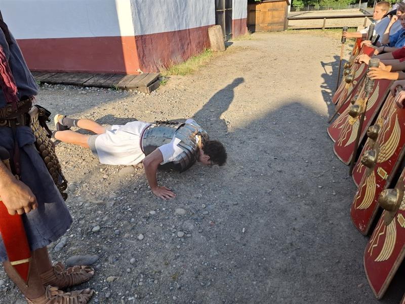 Nach Legionärsart marschierten wir im Anschluss durch die Stadt, bis wir im Lager angekommen waren. Hier durften wir kurz durchschnaufen, bevor wir in die Römerzeit eintreten konnten. Allerdings gab es dafür Bedingungen: