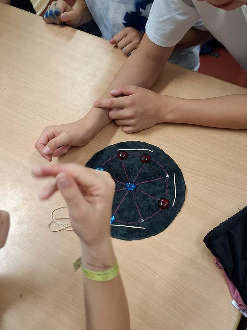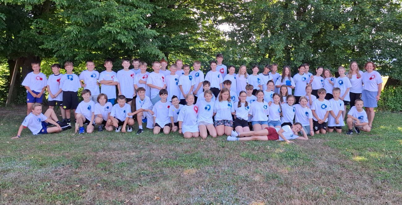 Mit unseren selbst gestalteten T-Shirts und mit einem eigens hergestellten römischen Mühlespiel ausgerüstet, machten wir uns am Freitag, nach dem Training bei unseren Sportlehrern Herrn Schulz und Frau Irion, zusammen auf den Weg. Sie hatten uns im Sportunterricht noch kurz das Viereck, den Kreis und das Dreieck beigebracht.