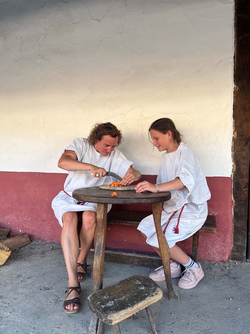 Bevor wir aber richtig in die Zeit vor 2000 Jahren eintauchen konnten, mussten wir uns von unserem heutigen Leben und seinen Annehmlichkeiten verabschieden, indem wir nur einige wenige Habseligkeiten mitnehmen durften. Alles andere wurde weggeschlossen und gab es für uns nicht mehr. Wir lernten hier, was man als Legionär so den ganzen Tag tut.