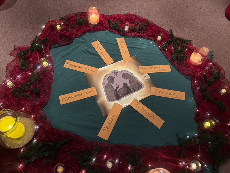 Am Donnerstag, 4.12. befassten sich Frau Pinnow und Frau Kunzelmann-Wilde mit Unterstützung von Frau Gönnheimer mit dem "Geschenk der Weisen" und fragten anschließend: "Welche Geschenke machen uns glücklich?". Sind es materielle Dinge oder ist Füreinander da sein, eine Umarmung, Helfen oder Zuhören nicht das wertvollste Geschenk, das man einem Menschen schenken kann?