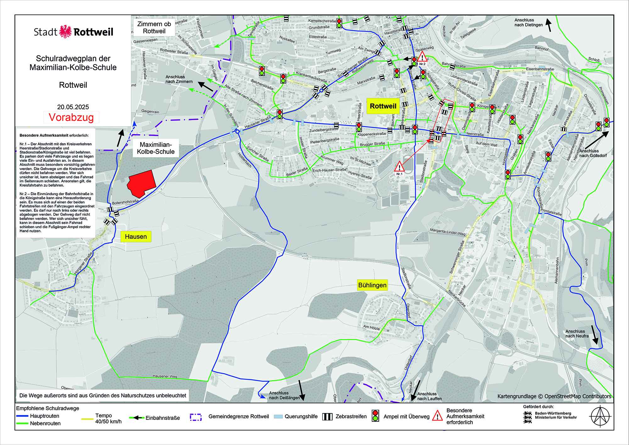 Unsere Schule ist mit den öffentlichen Verkehrsmitteln gut erreichbar, die Fahrpläne der Busunternehmen sind weitgehend an unsere Bedürfnisse angepasst, sodass uns auch Schülerinnen und Schüler vom Rottweiler Bahnhof aus morgens meist pünktlich erreichen können. Aus der näheren Umgebung sind wir zu Fuß und durch ein umfangreiches Radwegenetz auch sicher mit dem Rad zu erreichen. Überdachte Radstellplätze sind vorhanden.